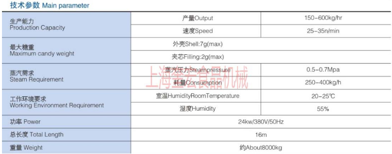 6:輸送鏈帶、冷卻系統(tǒng)及雙脫模機構(gòu)保證糖果脫模和輸送;